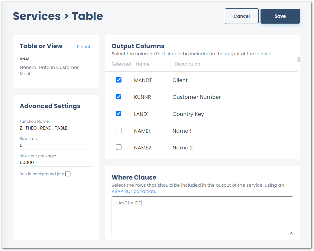 - Optional: Edit the parameters in the request body of the service, e.g., change the WHERE clause of the table extraction.